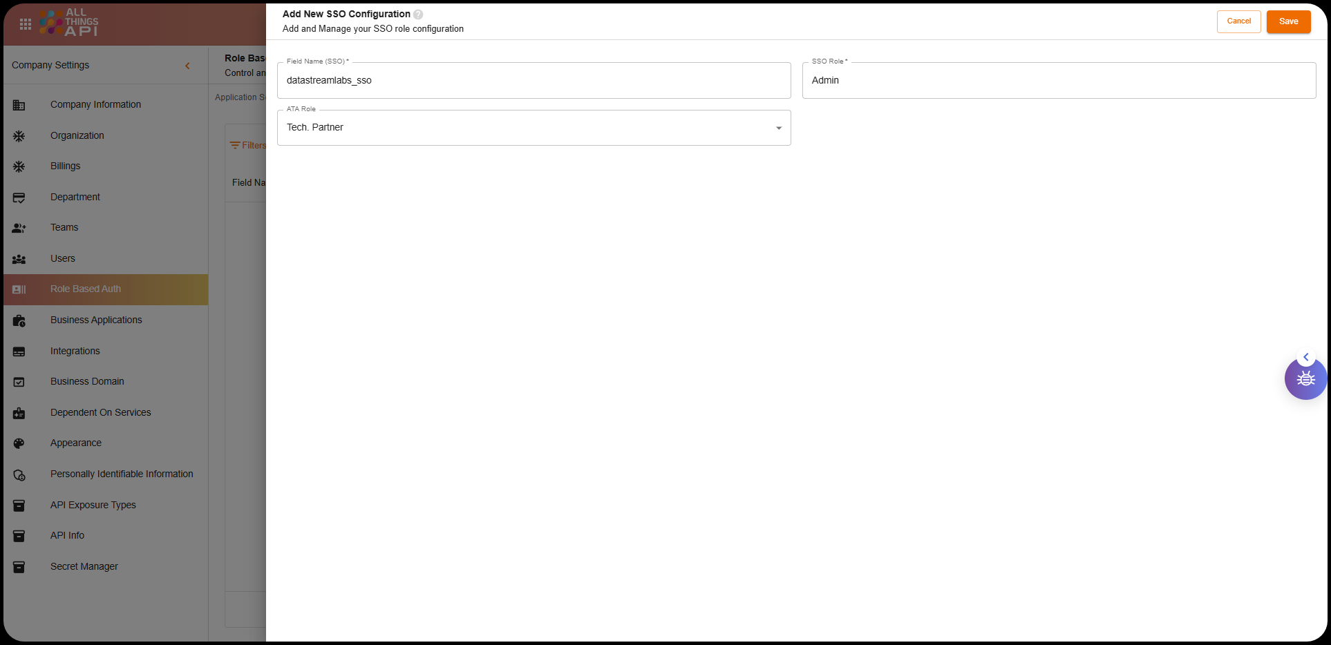 Single Sign-On (SSO) configuration allows you to integrate ATA with your company’s existing authentication system. By mapping your SSO roles to ATA roles, you can manage access across both platforms seamlessly.